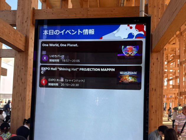 他にも「フューチャーライフゾーン 隕石 15時」とか「AR/VR連動イベント 巨大ミャクミャク出現中 エンパワーリングゾーン」とか「リングサイドマーケットプレイス東 インドカレーの店ではナンをその場で焼き上げるライブパフォーマンスがあり」などと前日にメモしていたのですが、猛暑にやられてすっかり忘れてました。