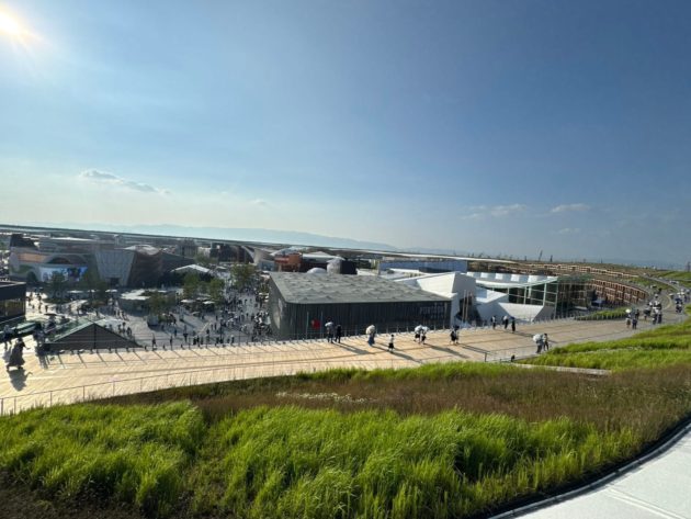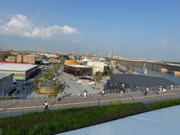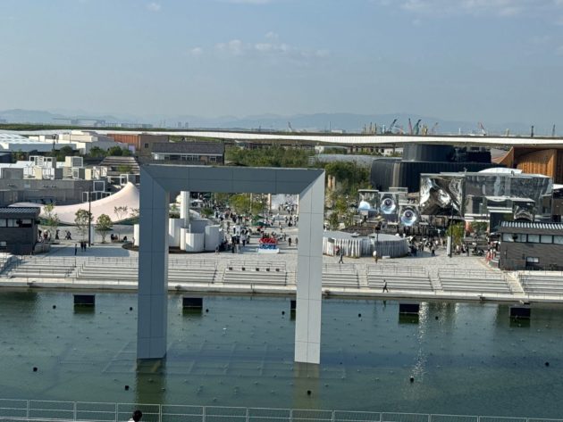 大屋根リングの上から見えたこの柱があるところは「いのちパーク」か。