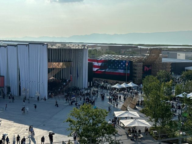 アメリカパビリオンの下にはすごい人が並んでいる。