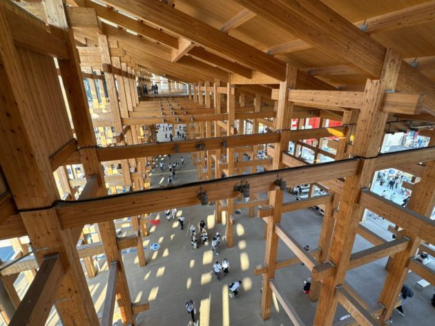 上から大屋根リングの下を撮ってみる。影が美しい。