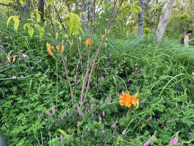 人が歩いた場所と人が歩かない柵の下ではこんなに違う。