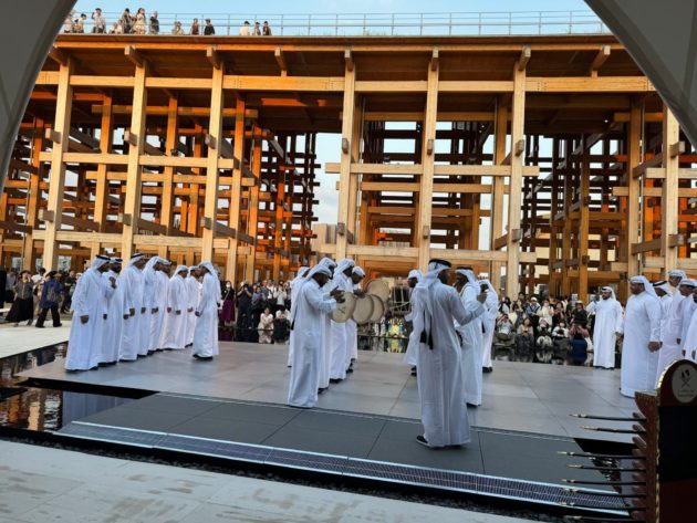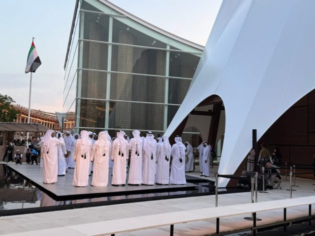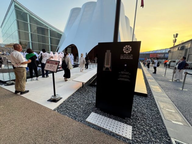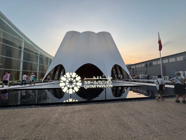 歩いていると白装束のイスラム男性集団が歌を歌っていたので、カタールパビリオンに入る。