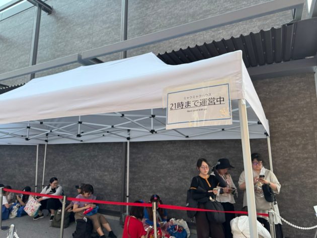 イタリア館のご予約のない方入場待ち最後尾。待ち時間2時間以上。