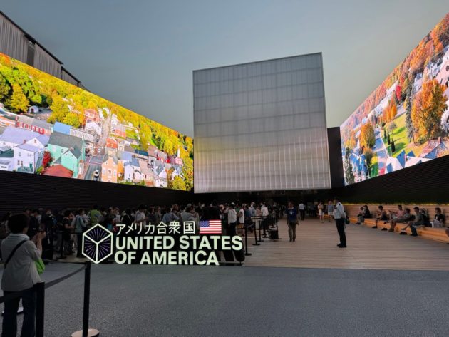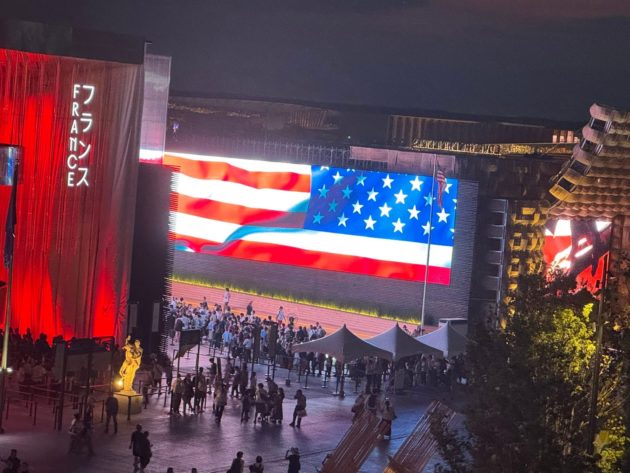 アメリカパビリオンは夜になると星条旗が映し出される🇺🇸