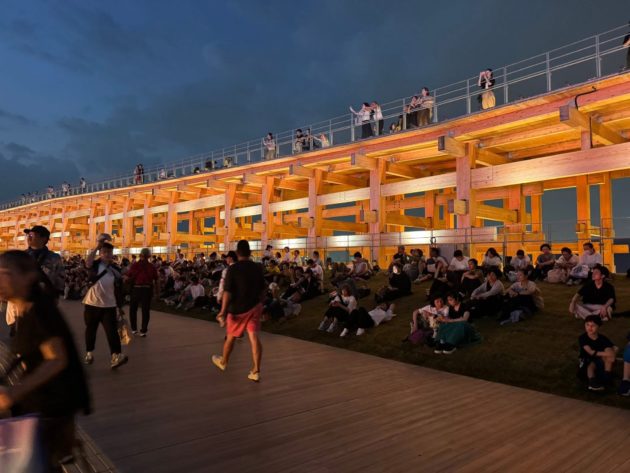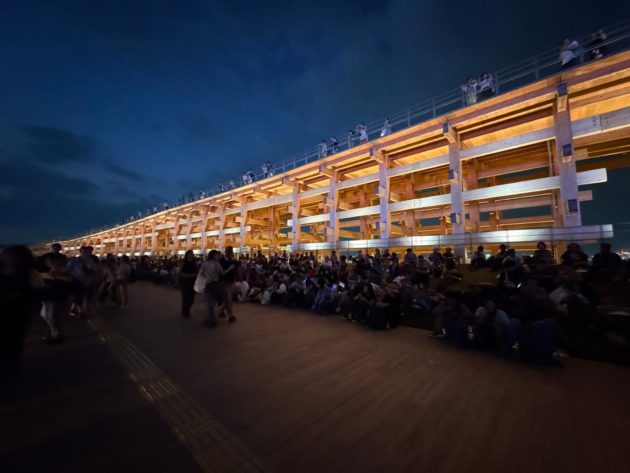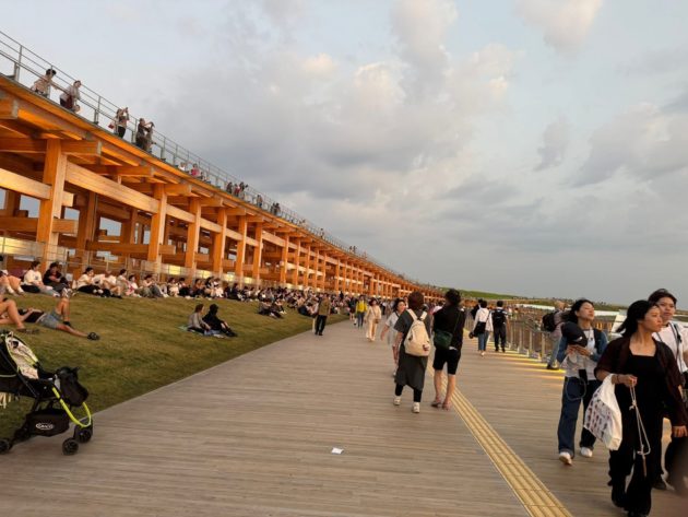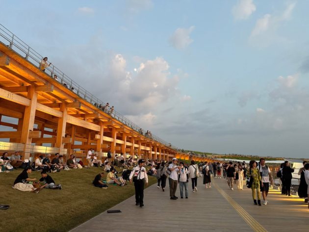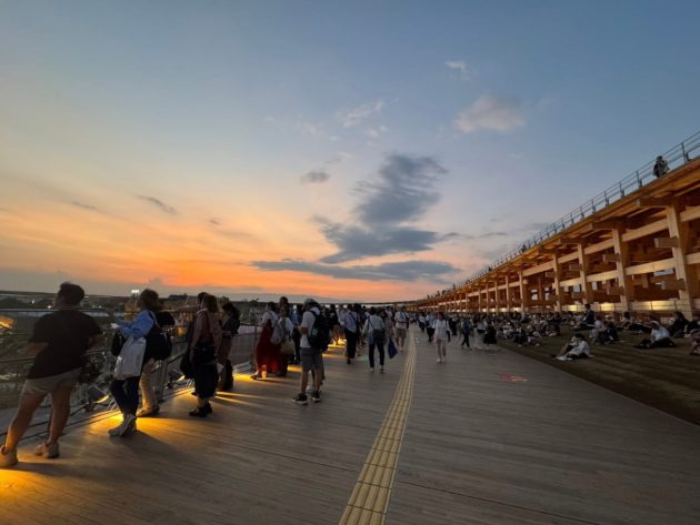 19時24分、気温はまだ33度ありますが、それそろ日が暮れそうなので再び大屋根リングに上ります。。