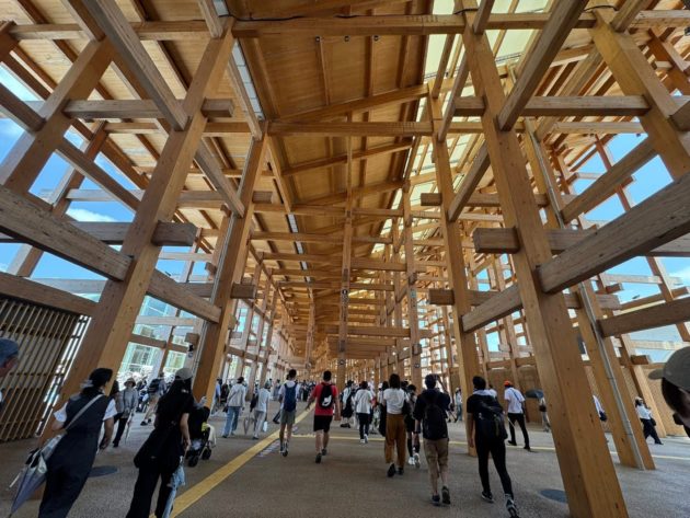 暑いけどそれでも大屋根リングの下は影ができるからいい。