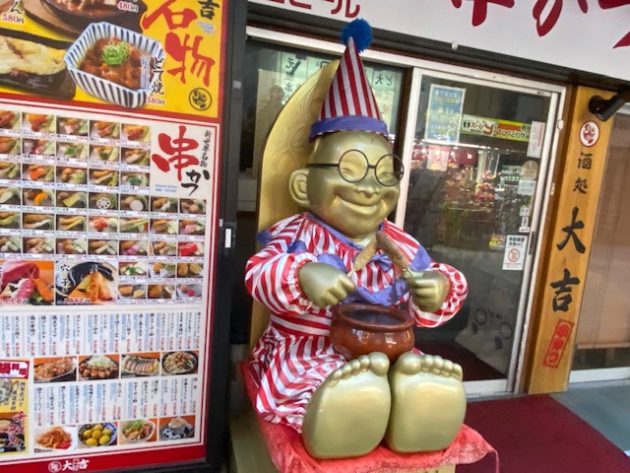 新世界は今ではビリケンさんの街にもなっていて、くいだおれ人形風になったビリケンさんも。