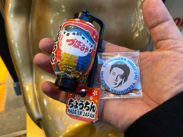 せっかくなので記念に、づぼらやミニ提灯と吉村洋文缶バッジを購入しました。