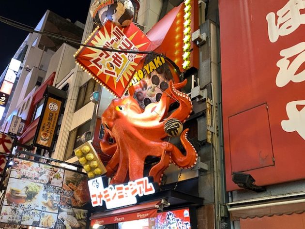 隣のコナモンミュージアムのタコ看板のほうが目立つ?